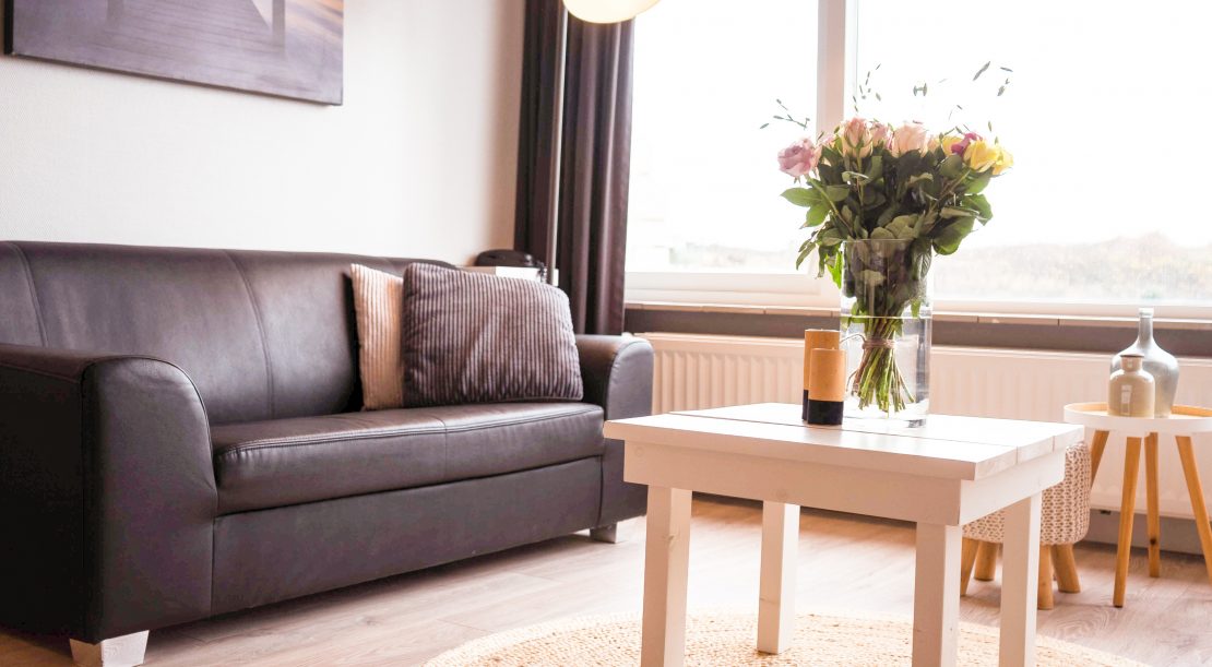 Het appartementstype Compact heeft een woonkamer met uitzicht op zee